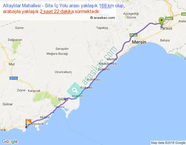 Altaylılar Mahallesi - Site İç Yolu arası yaklaşık olarak 90 km/h ile yukarıda belirtilen sürede olup, iki yerin kuş uçuşu uzaklığı (mesafesi) 141'dir. Yolculuk otobüsle 3 saat 4 dakika sürmektedir.