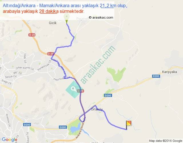 Altındağ Ankara - Mamak Ankara arası yaklaşık olarak 90 km/h ile yukarıda belirtilen sürede olup, iki yerin kuş uçuşu uzaklığı (mesafesi) 12'dir. Yolculuk otobüsle 36 dakika sürmektedir.