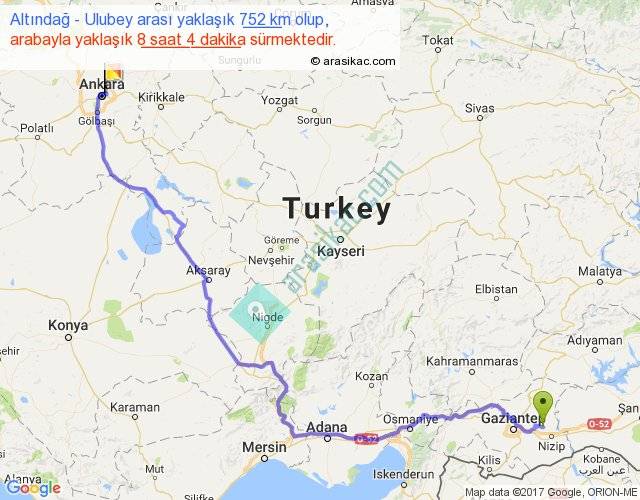 Altındağ - Ulubey arası yaklaşık olarak 90 km/h ile yukarıda belirtilen sürede olup, iki yerin kuş uçuşu uzaklığı (mesafesi) 522'dir. Eğer belirtilen yerler arasında uçak seferi var ise bu süre uçakla 48 dakika'ya kadar düşebilir. Yolculuk otobüsle 10 saat 29 dakika sürmektedir.