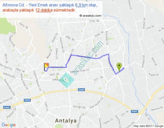 Altınova Cd. - Yeni Emek arası detaylı bilgi