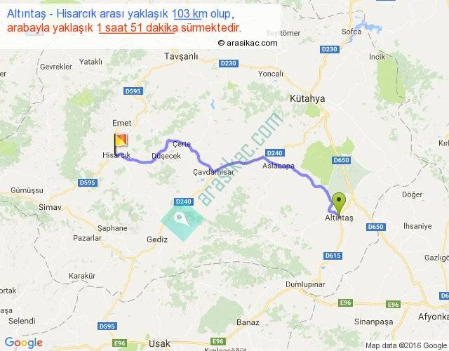 Eğer Altıntaş Hisarcık arası ne kadar yakar (benzin/mazot) diyorsanız, kilometrede 3 ₺ yakan bir aracınız var ise 309, km'de 4 ₺ yakan bir aracınız var ise 412, km'de 5 ₺ yakan bir aracınız var ise 515 ile bu yolculuğu tamamlayabilirsiniz.