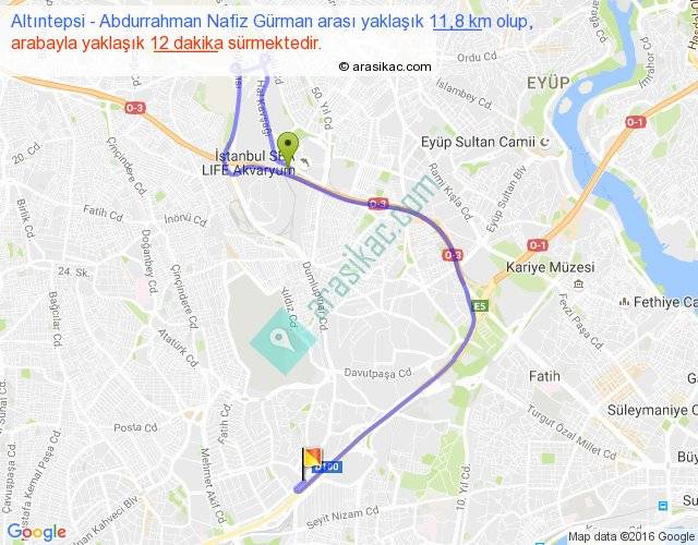 Eğer Altıntepsi Abdurrahman Nafiz Gürman arası ne kadar yakar (benzin/mazot) diyorsanız, kilometrede 3 ₺ yakan bir aracınız var ise 33, km'de 4 ₺ yakan bir aracınız var ise 44, km'de 5 ₺ yakan bir aracınız var ise 55 ile bu yolculuğu tamamlayabilirsiniz.