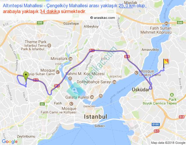 Altıntepsi Mahallesi - Çengelköy Mahallesi arası yaklaşık olarak 90 km/h ile yukarıda belirtilen sürede olup, iki yerin kuş uçuşu uzaklığı (mesafesi) 14'dir. Yolculuk otobüsle 44 dakika sürmektedir.