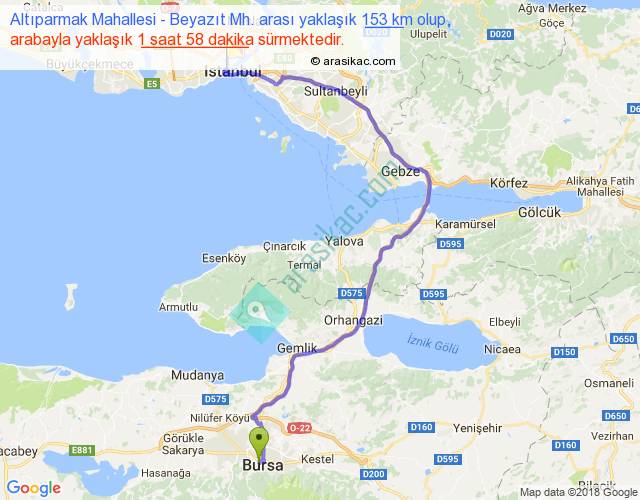 Altıparmak Mahallesi - Beyazıt Mh. arası yaklaşık olarak 90 km/h ile yukarıda belirtilen sürede olup, iki yerin kuş uçuşu uzaklığı (mesafesi) 91'dir. Yolculuk otobüsle 2 saat 33 dakika sürmektedir.