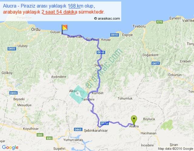 Eğer Alucra Piraziz arası ne kadar yakar (benzin/mazot) diyorsanız, kilometrede 3 ₺ yakan bir aracınız var ise 504, km'de 4 ₺ yakan bir aracınız var ise 672, km'de 5 ₺ yakan bir aracınız var ise 840 ile bu yolculuğu tamamlayabilirsiniz.