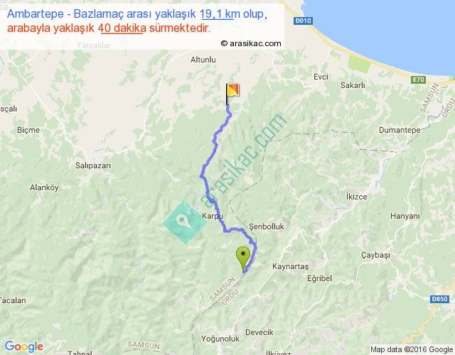 Ambartepe - Bazlamaç arası yaklaşık olarak 90 km/h ile yukarıda belirtilen sürede olup, iki yerin kuş uçuşu uzaklığı (mesafesi) 14'dir. Yolculuk otobüsle 52 dakika sürmektedir.