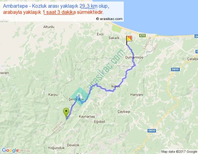 Ambartepe - Kozluk arası yaklaşık olarak 90 km/h ile yukarıda belirtilen sürede olup, iki yerin kuş uçuşu uzaklığı (mesafesi) 18'dir. Yolculuk otobüsle 1 saat 21 dakika sürmektedir.