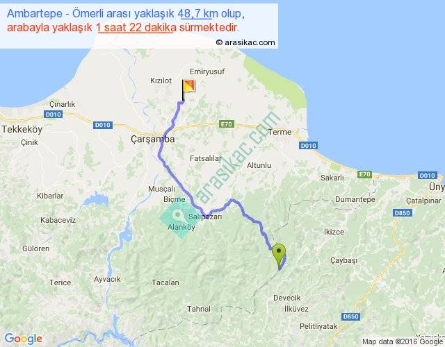 Ambartepe - Ömerli arası yaklaşık olarak 90 km/h ile yukarıda belirtilen sürede olup, iki yerin kuş uçuşu uzaklığı (mesafesi) 32'dir. Yolculuk otobüsle 1 saat 46 dakika sürmektedir.