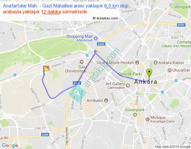 Anafartalar Mah. - Gazi Mahallesi arası detaylı bilgi