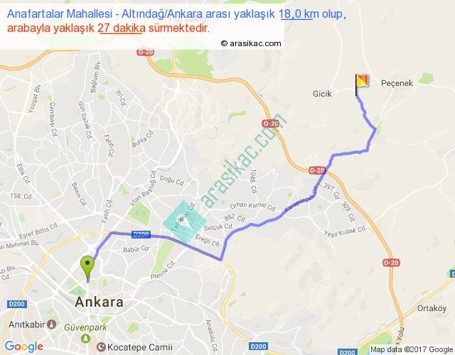 Anafartalar Mahallesi - Altındağ Ankara arası yaklaşık olarak 90 km/h ile yukarıda belirtilen sürede olup, iki yerin kuş uçuşu uzaklığı (mesafesi) 13'dir. Yolculuk otobüsle 35 dakika sürmektedir.
