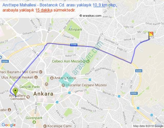 Anıttepe Mahallesi - Bostancık Cd. arası yaklaşık olarak 90 km/h ile yukarıda belirtilen sürede olup, iki yerin kuş uçuşu uzaklığı (mesafesi) 8'dir. Yolculuk otobüsle 19 dakika sürmektedir.