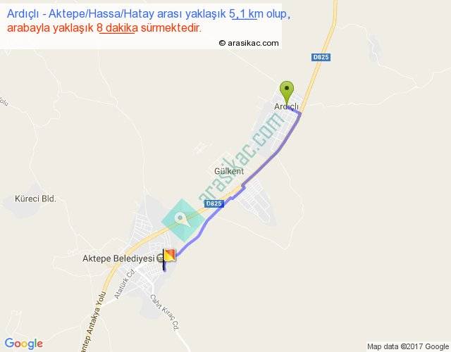Ardıçlı - Aktepe Hassa Hatay arası yaklaşık olarak 90 km/h ile yukarıda belirtilen sürede olup, iki yerin kuş uçuşu uzaklığı (mesafesi) 4'dir. Yolculuk otobüsle 10 dakika sürmektedir.