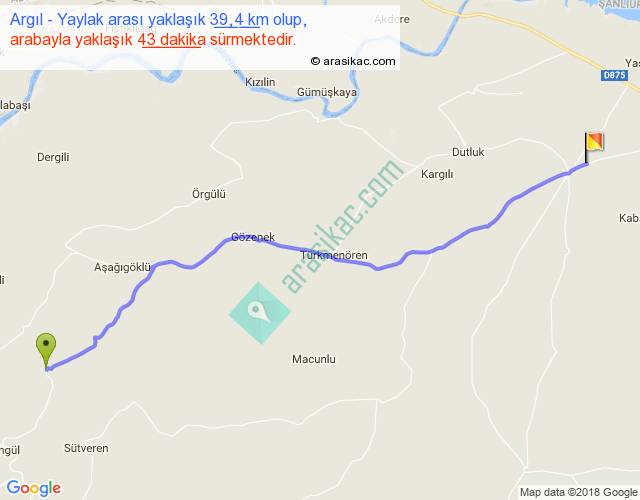 Argıl - Yaylak arası yaklaşık olarak 90 km/h ile yukarıda belirtilen sürede olup, iki yerin kuş uçuşu uzaklığı (mesafesi) 35'dir. Yolculuk otobüsle 55 dakika sürmektedir.
