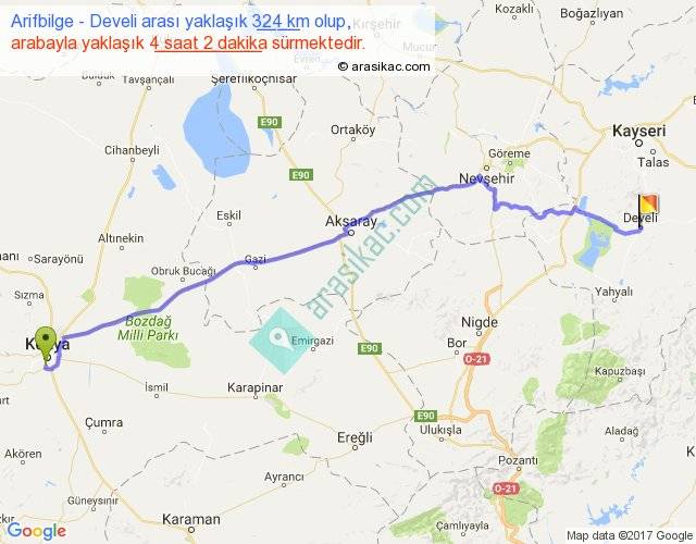 Eğer Arifbilge Develi arası ne kadar yakar (benzin/mazot) diyorsanız, kilometrede 3 ₺ yakan bir aracınız var ise 972, km'de 4 ₺ yakan bir aracınız var ise 1296, km'de 5 ₺ yakan bir aracınız var ise 1620 ile bu yolculuğu tamamlayabilirsiniz.