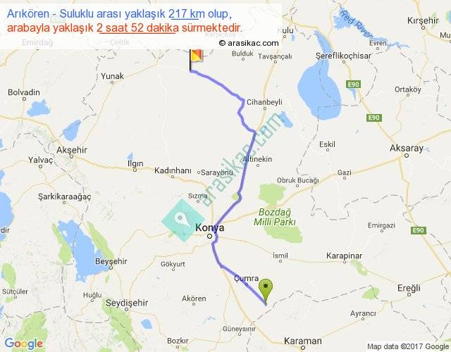 Eğer Arıkören Suluklu arası ne kadar yakar (benzin/mazot) diyorsanız, kilometrede 3 ₺ yakan bir aracınız var ise 651, km'de 4 ₺ yakan bir aracınız var ise 868, km'de 5 ₺ yakan bir aracınız var ise 1085 ile bu yolculuğu tamamlayabilirsiniz.