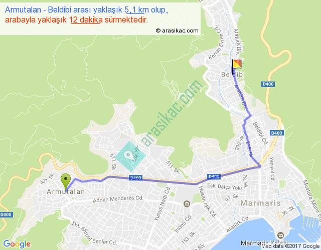 Armutalan - Beldibi arası yaklaşık olarak 90 km/h ile yukarıda belirtilen sürede olup, iki yerin kuş uçuşu uzaklığı (mesafesi) 3'dir. Yolculuk otobüsle 15 dakika sürmektedir.