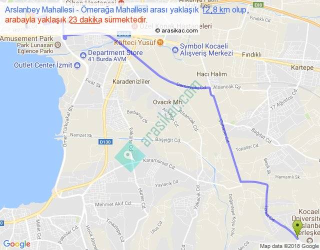 Arslanbey Mahallesi - Ömerağa Mahallesi arası yaklaşık olarak 90 km/h ile yukarıda belirtilen sürede olup, iki yerin kuş uçuşu uzaklığı (mesafesi) 10'dir. Yolculuk otobüsle 29 dakika sürmektedir.
