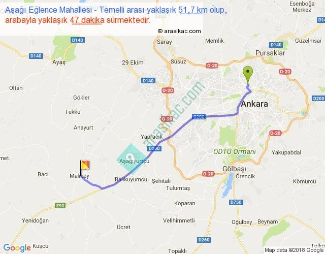 Aşağı Eğlence Mahallesi - Temelli arası yaklaşık olarak 90 km/h ile yukarıda belirtilen sürede olup, iki yerin kuş uçuşu uzaklığı (mesafesi) 44'dir. Yolculuk otobüsle 1 saat 1 dakika sürmektedir.