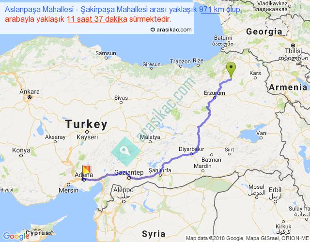 Aslanpaşa Mahallesi - Şakirpaşa Mahallesi arası yaklaşık olarak 90 km/h ile yukarıda belirtilen sürede olup, iki yerin kuş uçuşu uzaklığı (mesafesi) 700'dir. Eğer belirtilen yerler arasında uçak seferi var ise bu süre uçakla 1 saat 04 dakika'ya kadar düşebilir. Yolculuk otobüsle 15 saat 6 dakika sürmektedir.