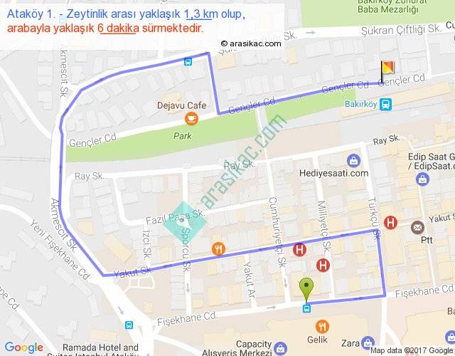 Eğer Ataköy 1. Zeytinlik arası ne kadar yakar (benzin/mazot) diyorsanız, kilometrede 3 ₺ yakan bir aracınız var ise 3, km'de 4 ₺ yakan bir aracınız var ise 4, km'de 5 ₺ yakan bir aracınız var ise 5 ile bu yolculuğu tamamlayabilirsiniz.