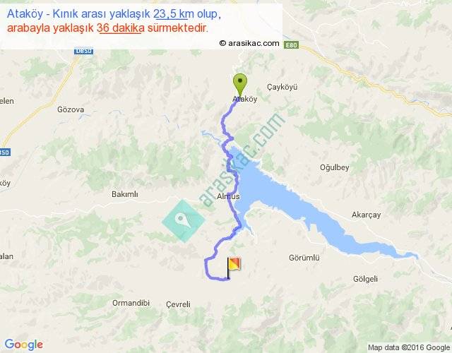 Ataköy - Kınık arası yaklaşık olarak 90 km/h ile yukarıda belirtilen sürede olup, iki yerin kuş uçuşu uzaklığı (mesafesi) 15'dir. Yolculuk otobüsle 46 dakika sürmektedir.