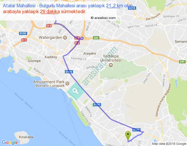 Atalar Mahallesi - Bulgurlu Mahallesi arası yaklaşık olarak 90 km/h ile yukarıda belirtilen sürede olup, iki yerin kuş uçuşu uzaklığı (mesafesi) 15'dir. Yolculuk otobüsle 37 dakika sürmektedir.