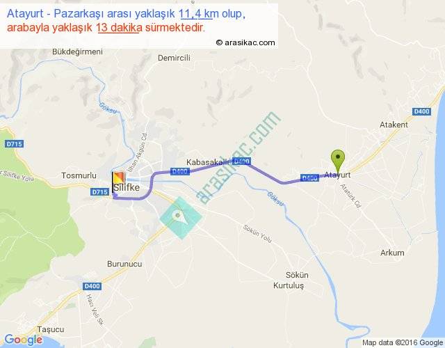 Atayurt - Pazarkaşı arası yaklaşık olarak 90 km/h ile yukarıda belirtilen sürede olup, iki yerin kuş uçuşu uzaklığı (mesafesi) 10'dir. Yolculuk otobüsle 16 dakika sürmektedir.