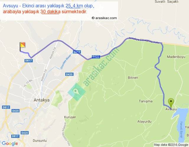 Avsuyu - Ekinci arası yaklaşık olarak 90 km/h ile yukarıda belirtilen sürede olup, iki yerin kuş uçuşu uzaklığı (mesafesi) 17'dir. Yolculuk otobüsle 39 dakika sürmektedir.