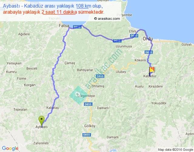 Eğer Aybastı Kabadüz arası ne kadar yakar (benzin/mazot) diyorsanız, kilometrede 3 ₺ yakan bir aracınız var ise 324, km'de 4 ₺ yakan bir aracınız var ise 432, km'de 5 ₺ yakan bir aracınız var ise 540 ile bu yolculuğu tamamlayabilirsiniz.