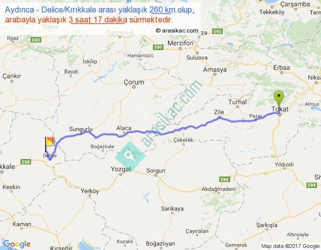 Eğer Aydınca Delice Kırıkkale arası ne kadar yakar (benzin/mazot) diyorsanız, kilometrede 3 ₺ yakan bir aracınız var ise 780, km'de 4 ₺ yakan bir aracınız var ise 1040, km'de 5 ₺ yakan bir aracınız var ise 1300 ile bu yolculuğu tamamlayabilirsiniz.