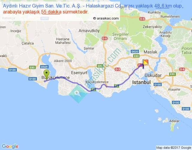 Aydınlı Hazır Giyim San. Ve Tic. A.Ş. - Halaskargazi Cd. arası detaylı bilgi