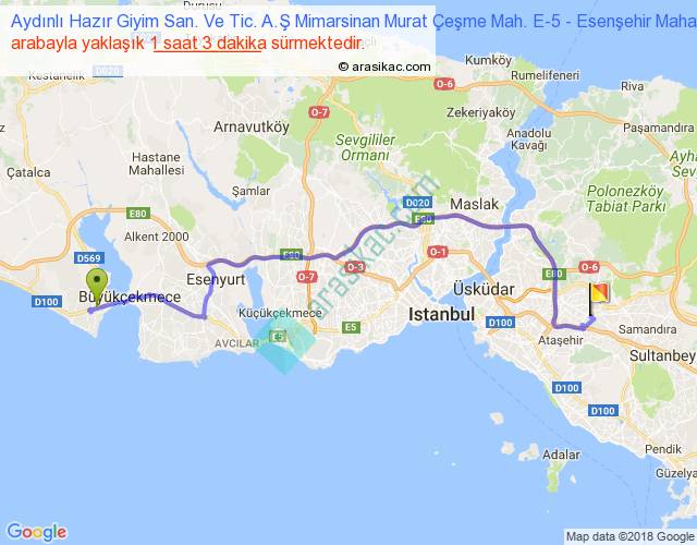Aydınlı Hazır Giyim San. Ve Tic. A.Ş Mimarsinan Murat Çeşme Mah. E-5 - Esenşehir Mahallesi arası detaylı bilgi
