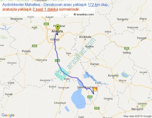 Aydınlıkevler Mahallesi - Devekovan arası yaklaşık olarak 90 km/h ile yukarıda belirtilen sürede olup, iki yerin kuş uçuşu uzaklığı (mesafesi) 141'dir. Yolculuk otobüsle 2 saat 37 dakika sürmektedir.