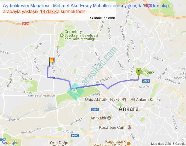 Eğer Aydınlıkevler Mahallesi Mehmet Akif Ersoy Mahallesi arası ne kadar yakar (benzin/mazot) diyorsanız, kilometrede 3 ₺ yakan bir aracınız var ise 33, km'de 4 ₺ yakan bir aracınız var ise 44, km'de 5 ₺ yakan bir aracınız var ise 55 ile bu yolculuğu tamamlayabilirsiniz.