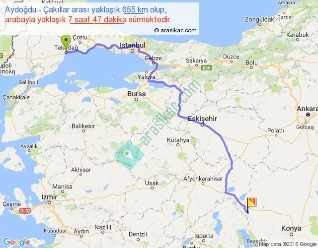 Aydoğdu - Çakıllar arası yaklaşık olarak 90 km/h ile yukarıda belirtilen sürede olup, iki yerin kuş uçuşu uzaklığı (mesafesi) 457'dir. Eğer belirtilen yerler arasında uçak seferi var ise bu süre uçakla 42 dakika'ya kadar düşebilir. Yolculuk otobüsle 10 saat 7 dakika sürmektedir.
