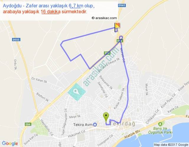 Aydoğdu - Zafer arası yaklaşık olarak 90 km/h ile yukarıda belirtilen sürede olup, iki yerin kuş uçuşu uzaklığı (mesafesi) 2'dir. Yolculuk otobüsle 20 dakika sürmektedir.