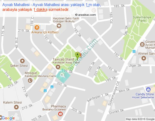 Ayvalı Mahallesi - Ayvalı Mahallesi arası yaklaşık olarak 90 km/h ile yukarıda belirtilen sürede olup, iki yerin kuş uçuşu uzaklığı (mesafesi) 0'dir. Yolculuk otobüsle 1 dakika sürmektedir.