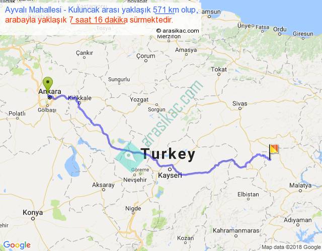 Ayvalı Mahallesi - Kuluncak arası yaklaşık olarak 90 km/h ile yukarıda belirtilen sürede olup, iki yerin kuş uçuşu uzaklığı (mesafesi) 432'dir. Eğer belirtilen yerler arasında uçak seferi var ise bu süre uçakla 39 dakika'ya kadar düşebilir. Yolculuk otobüsle 9 saat 26 dakika sürmektedir.