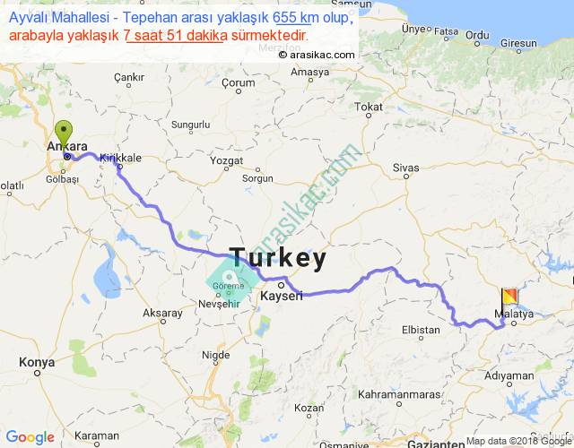 Ayvalı Mahallesi - Tepehan arası yaklaşık olarak 90 km/h ile yukarıda belirtilen sürede olup, iki yerin kuş uçuşu uzaklığı (mesafesi) 492'dir. Eğer belirtilen yerler arasında uçak seferi var ise bu süre uçakla 45 dakika'ya kadar düşebilir. Yolculuk otobüsle 10 saat 12 dakika sürmektedir.