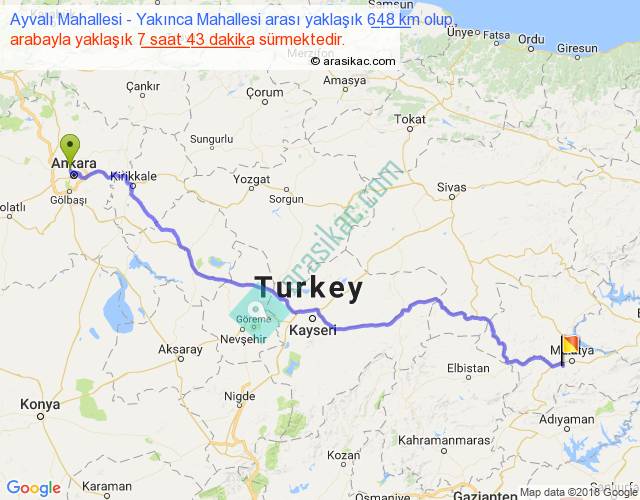 Ayvalı Mahallesi - Yakınca Mahallesi arası yaklaşık olarak 90 km/h ile yukarıda belirtilen sürede olup, iki yerin kuş uçuşu uzaklığı (mesafesi) 499'dir. Eğer belirtilen yerler arasında uçak seferi var ise bu süre uçakla 46 dakika'ya kadar düşebilir. Yolculuk otobüsle 10 saat 1 dakika sürmektedir.