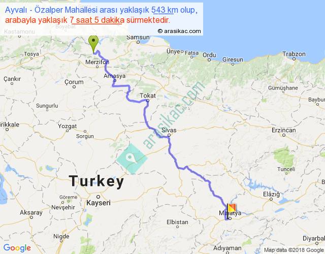 Ayvalı - Özalper Mahallesi arası yaklaşık olarak 90 km/h ile yukarıda belirtilen sürede olup, iki yerin kuş uçuşu uzaklığı (mesafesi) 392'dir. Eğer belirtilen yerler arasında uçak seferi var ise bu süre uçakla 36 dakika'ya kadar düşebilir. Yolculuk otobüsle 9 saat 12 dakika sürmektedir.