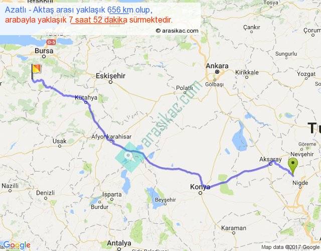 Eğer Azatlı Aktaş arası ne kadar yakar (benzin/mazot) diyorsanız, kilometrede 3 ₺ yakan bir aracınız var ise 1968, km'de 4 ₺ yakan bir aracınız var ise 2624, km'de 5 ₺ yakan bir aracınız var ise 3280 ile bu yolculuğu tamamlayabilirsiniz.
