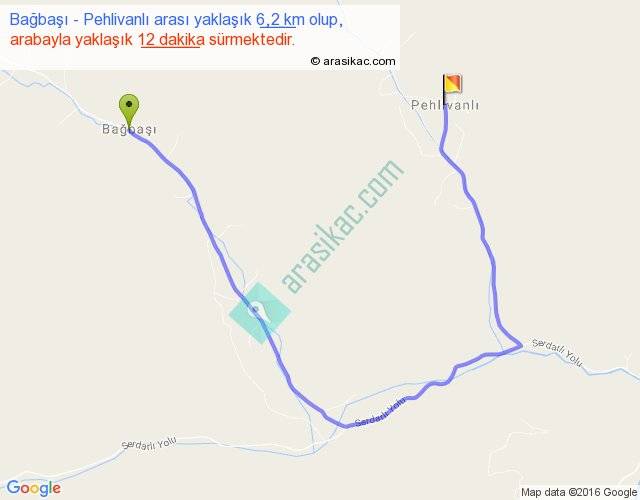 Bağbaşı - Pehlivanlı arası yaklaşık olarak 90 km/h ile yukarıda belirtilen sürede olup, iki yerin kuş uçuşu uzaklığı (mesafesi) 2'dir. Yolculuk otobüsle 15 dakika sürmektedir.