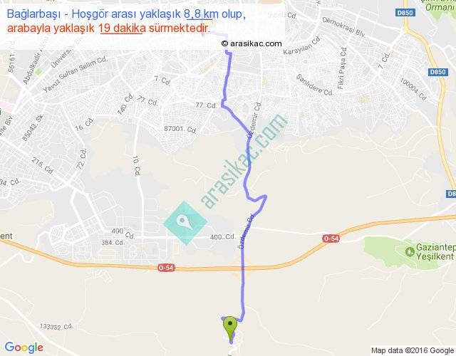 Bağlarbaşı - Hoşgör arası yaklaşık olarak 90 km/h ile yukarıda belirtilen sürede olup, iki yerin kuş uçuşu uzaklığı (mesafesi) 7'dir. Yolculuk otobüsle 24 dakika sürmektedir.