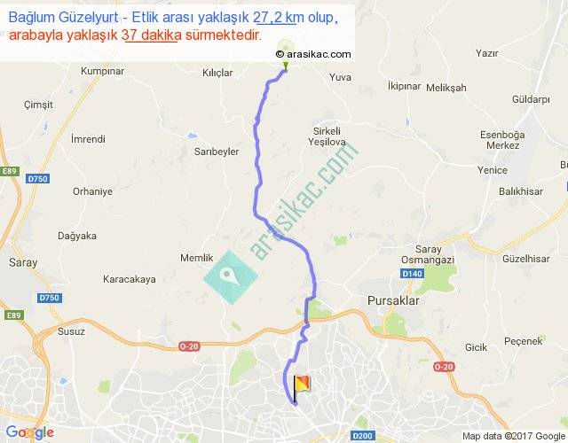 Bağlum Güzelyurt - Etlik arası yaklaşık olarak 90 km/h ile yukarıda belirtilen sürede olup, iki yerin kuş uçuşu uzaklığı (mesafesi) 22'dir. Yolculuk otobüsle 48 dakika sürmektedir.