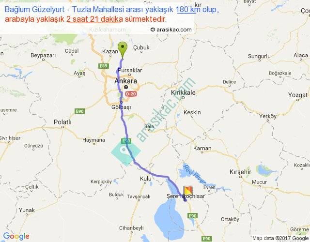 Bağlum Güzelyurt - Tuzla Mahallesi arası yaklaşık olarak 90 km/h ile yukarıda belirtilen sürede olup, iki yerin kuş uçuşu uzaklığı (mesafesi) 150'dir. Yolculuk otobüsle 3 saat 3 dakika sürmektedir.