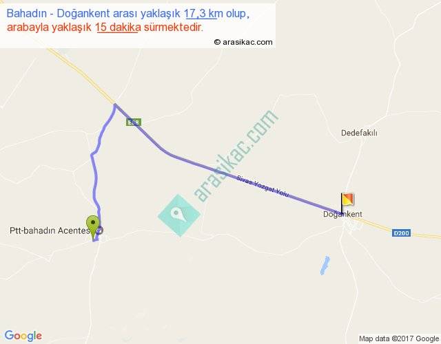 Bahadın - Doğankent arası yaklaşık olarak 90 km/h ile yukarıda belirtilen sürede olup, iki yerin kuş uçuşu uzaklığı (mesafesi) 11'dir. Yolculuk otobüsle 19 dakika sürmektedir.