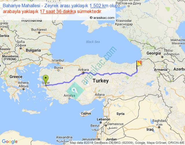 Bahariye Mahallesi - Zeyrek arası yaklaşık olarak 90 km/h ile yukarıda belirtilen sürede olup, iki yerin kuş uçuşu uzaklığı (mesafesi) 1202'dir. Eğer belirtilen yerler arasında uçak seferi var ise bu süre uçakla 1 saat 50 dakika'ya kadar düşebilir. Yolculuk otobüsle 22 saat 52 dakika sürmektedir.