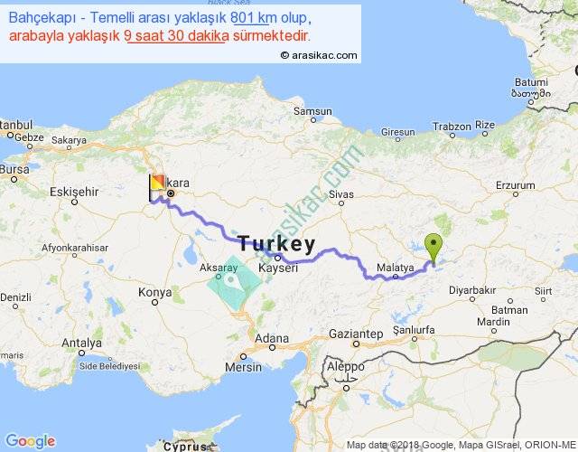 Bahçekapı - Temelli arası yaklaşık olarak 90 km/h ile yukarıda belirtilen sürede olup, iki yerin kuş uçuşu uzaklığı (mesafesi) 604'dir. Eğer belirtilen yerler arasında uçak seferi var ise bu süre uçakla 55 dakika'ya kadar düşebilir. Yolculuk otobüsle 12 saat 21 dakika sürmektedir.