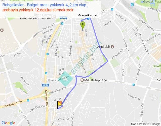 Bahçelievler - Balgat arası yaklaşık olarak 90 km/h ile yukarıda belirtilen sürede olup, iki yerin kuş uçuşu uzaklığı (mesafesi) 2'dir. Yolculuk otobüsle 15 dakika sürmektedir.